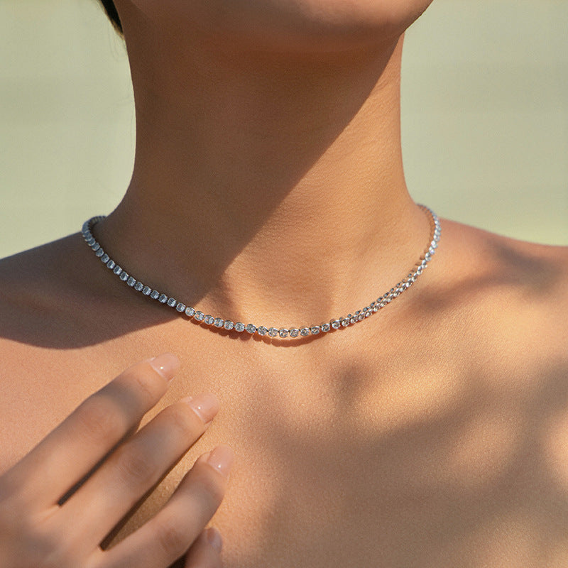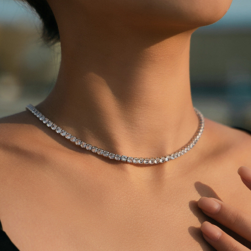 Silberne Tennis-Halskette mit Marquise-Kristall