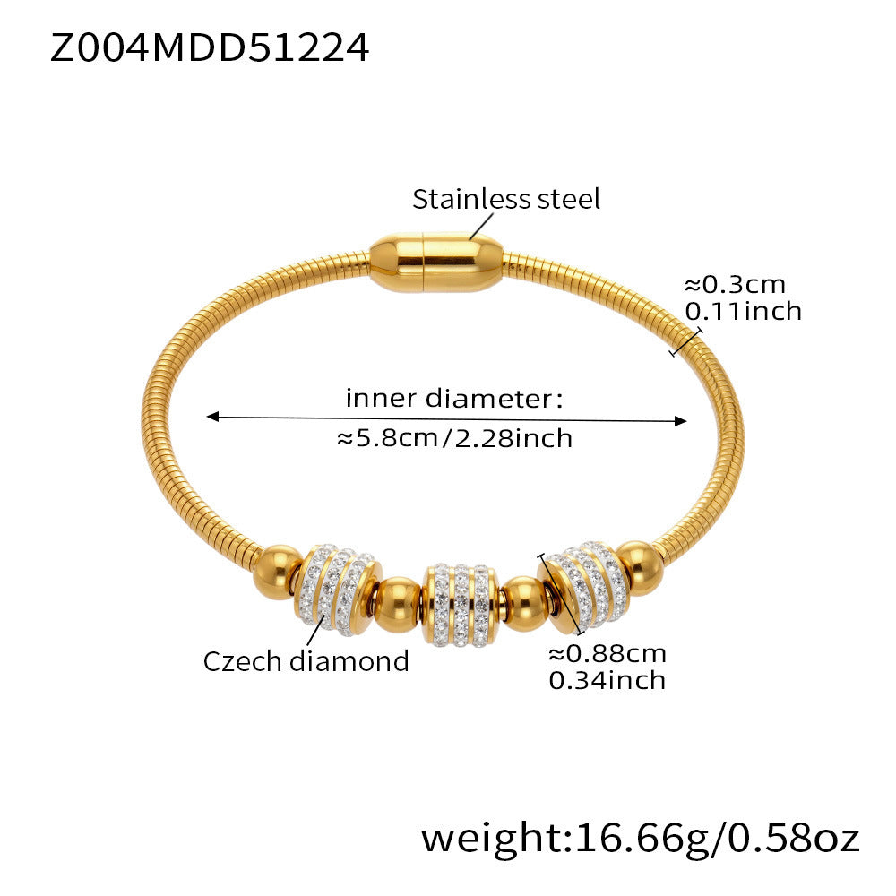 Stapelbare Bambusarmreifen mit Kristalleinlagen