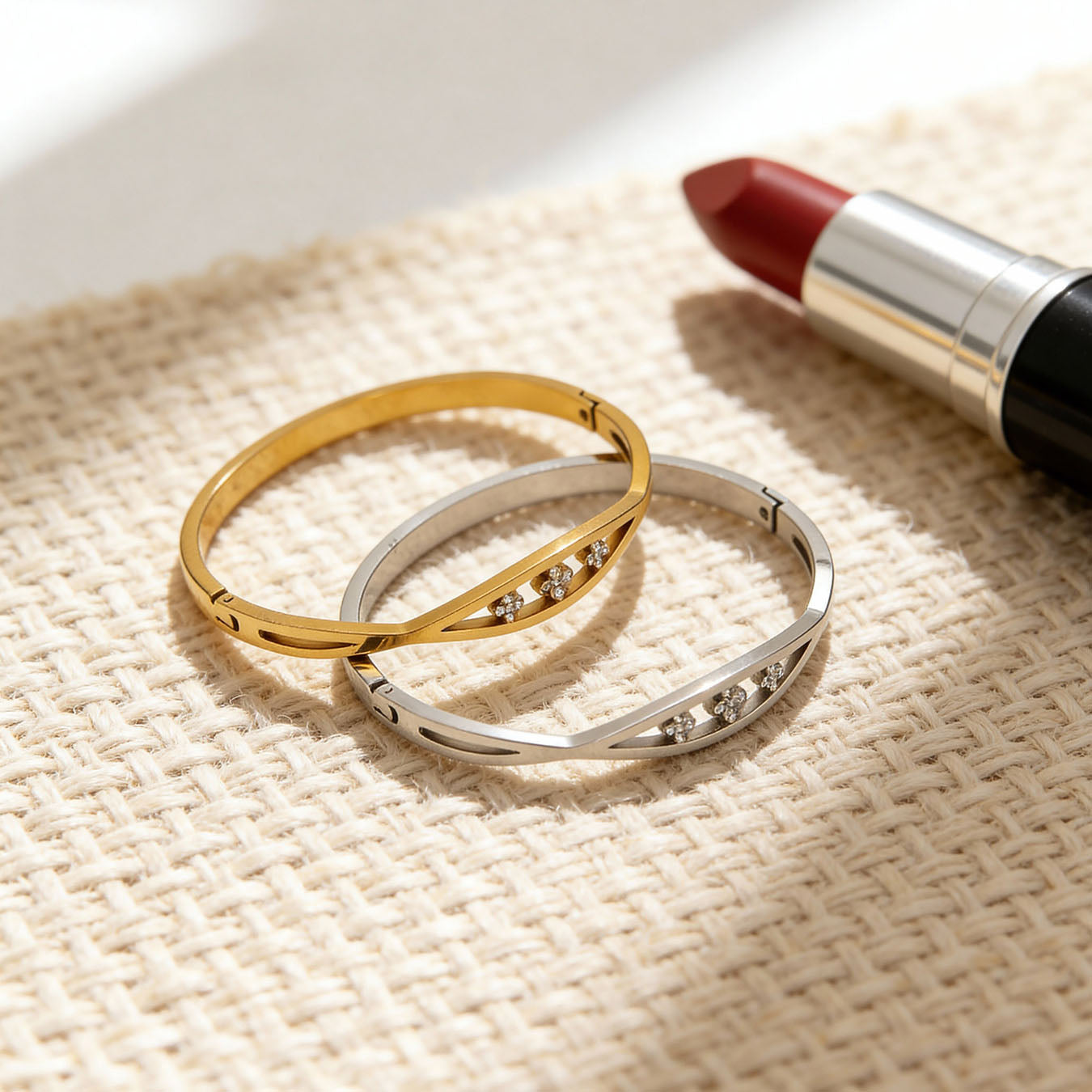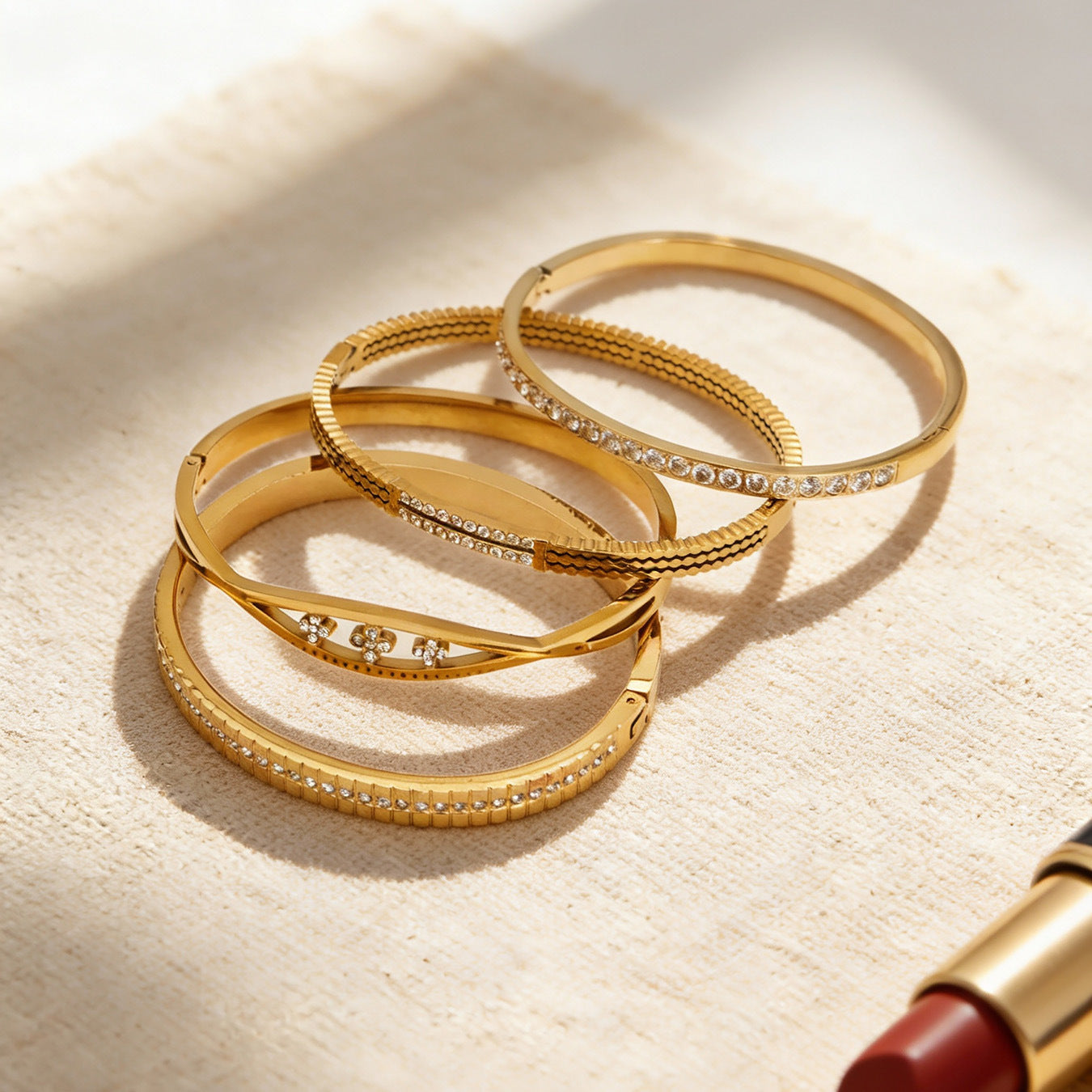 Sublimez votre collection de bijoux avec cet exquis ensemble de bracelets plaqués or , conçu pour la femme moderne qui aime une touche d'éclat. Chaque pièce arbore un design architectural unique, allant de délicates découpes florales à des cristaux pavés aux formes géométriques sophistiquées. Confectionnés à partir de matériaux de haute qualité et résistants au ternissement, ces bracelets offrent un éclat brillant digne des plus grands bijoux. Portés seuls pour un look minimaliste ou accumulés pour une allure plus affirmée, ces bracelets polyvalents sont l'accessoire parfait pour les mariages, les soirées ou simplement pour une touche d'élégance au quotidien.