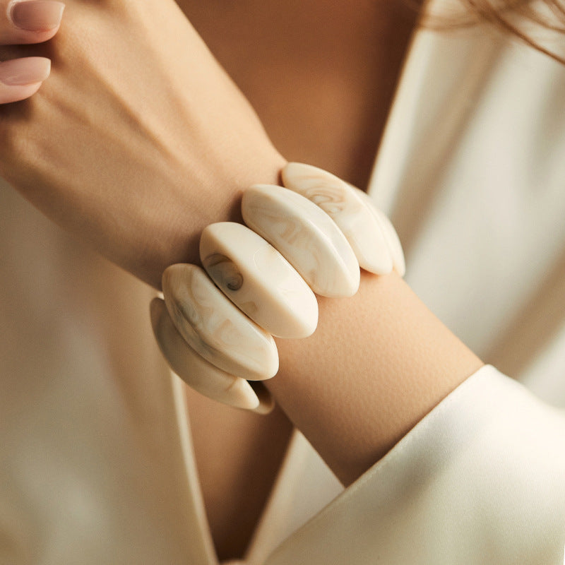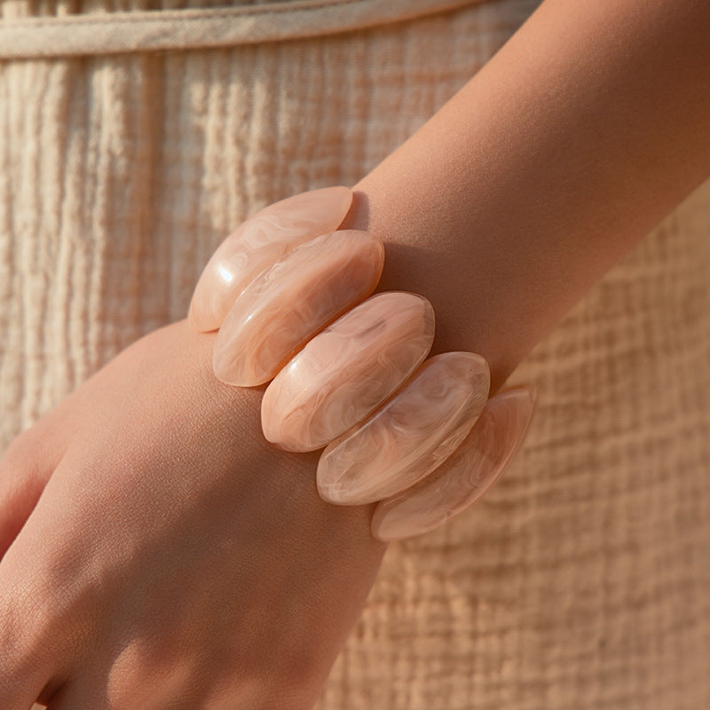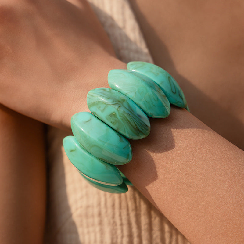 Elevate your accessory game with our Bold Marbled Resin Chunky Link Bracelet. Featuring oversized, smooth oval links with a sophisticated marbled texture, these bracelets offer a modern twist on retro aesthetics. Each piece is crafted from high-quality, lightweight resin for all-day comfort, while the durable internal stretch band ensures a perfect fit for any wrist. Available in five stunning shades—from earthy olive to vibrant turquoise—it’s the ultimate chic statement piece to wear solo or stack for a maximalist look.