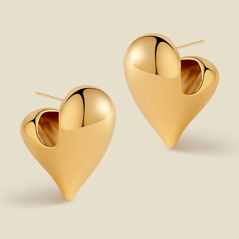 Elevate your jewelry curation with these stunning Chunky Gold Heart Stud Earrings. Designed for the modern romantic, these pieces feature a bold, sculptural silhouette that puts a contemporary, "melted" twist on a classic symbol. The high-polish mirror finish catches the light from every angle, making them an effortless statement for both power suits and evening wear. Lightweight yet visually impactful, they embody minimalist luxury. A standout addition to our latest collection, perfect for those who love bold, artistic elegance.