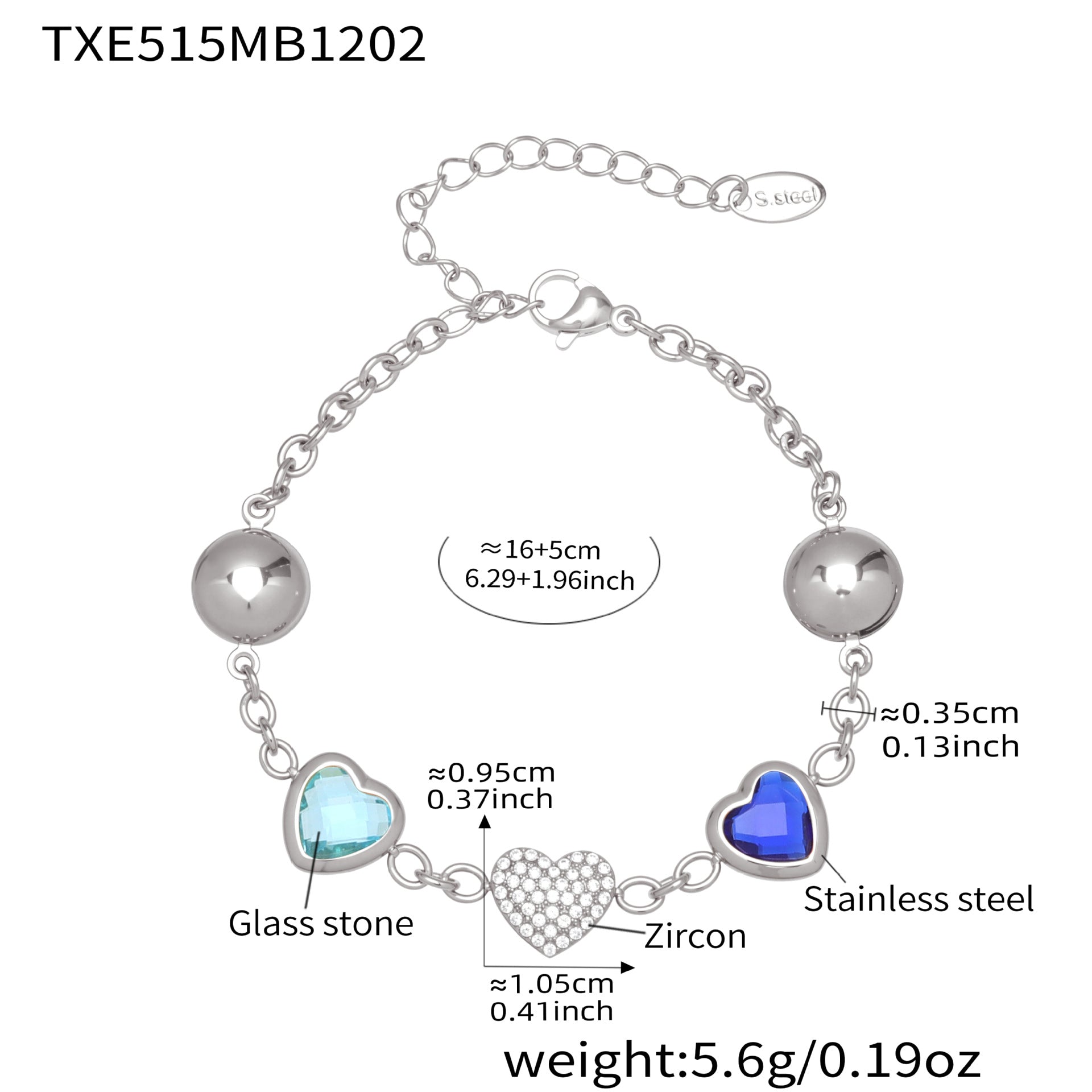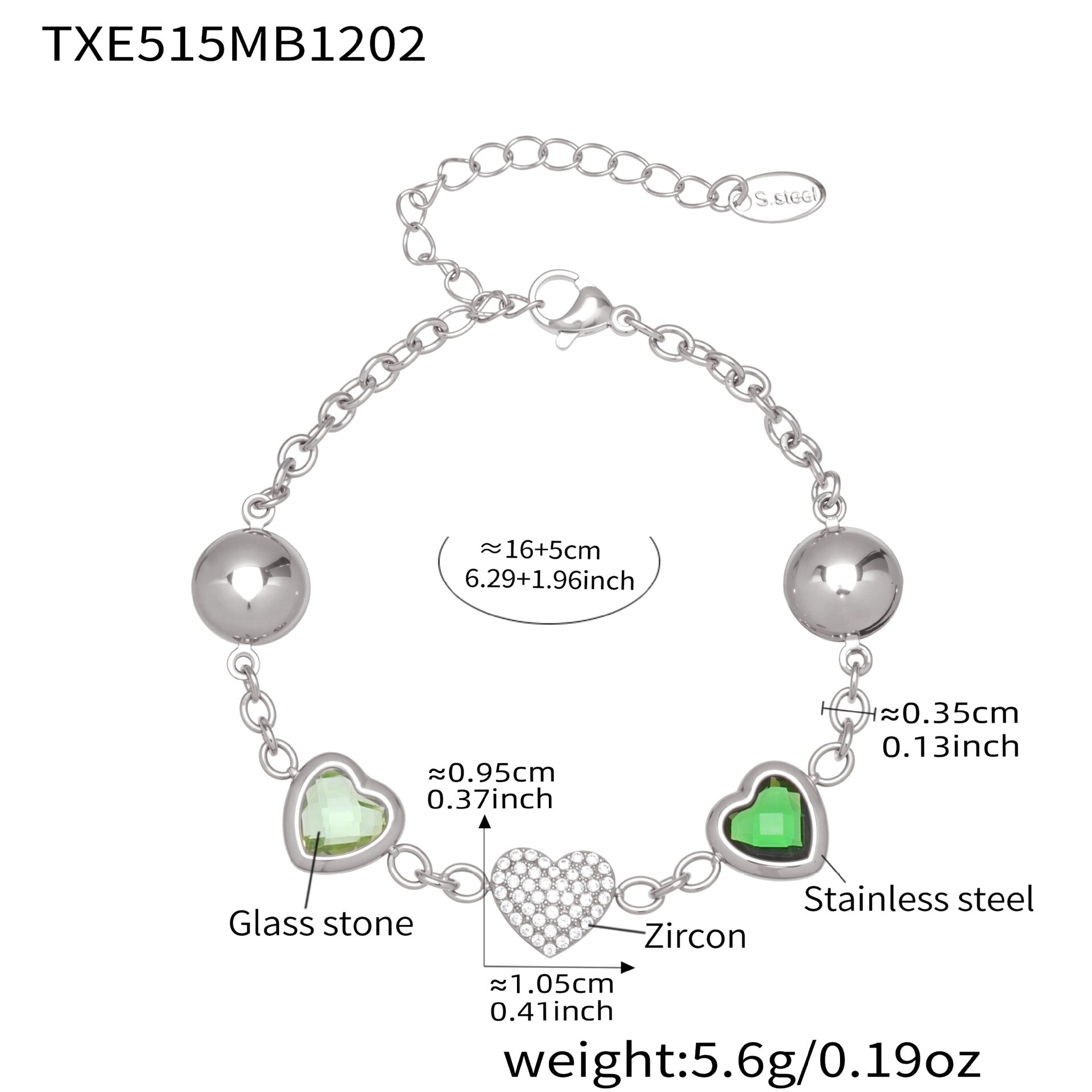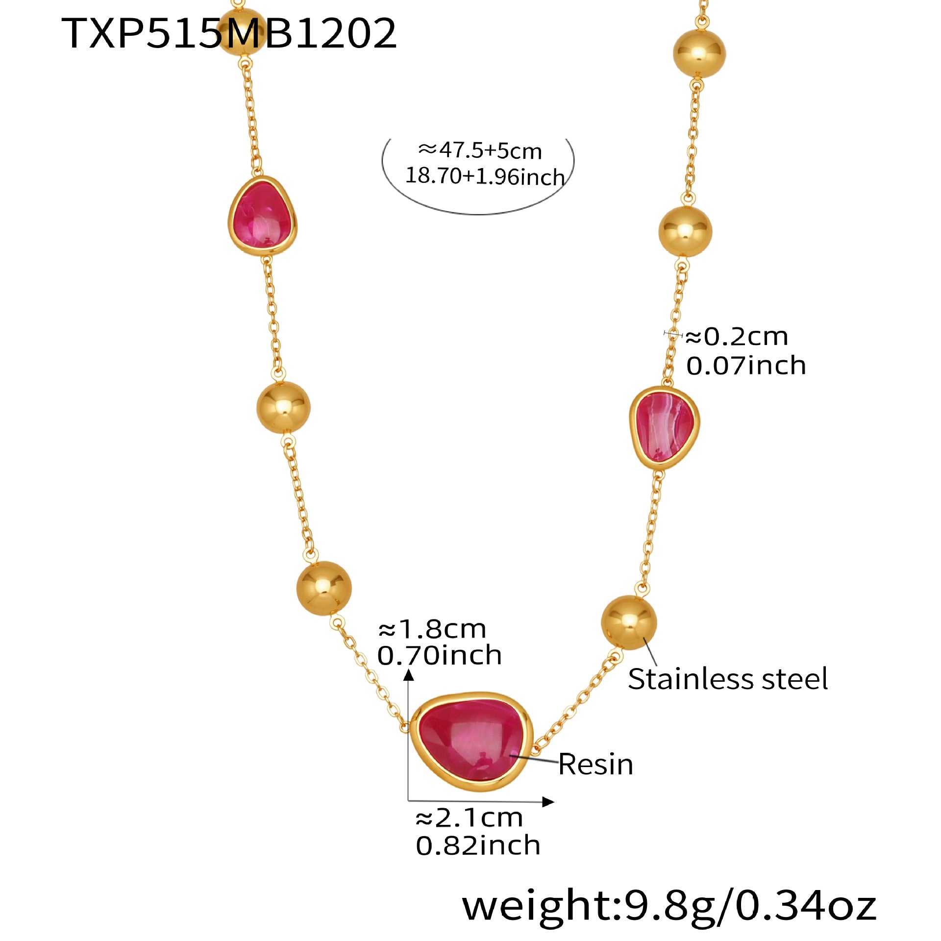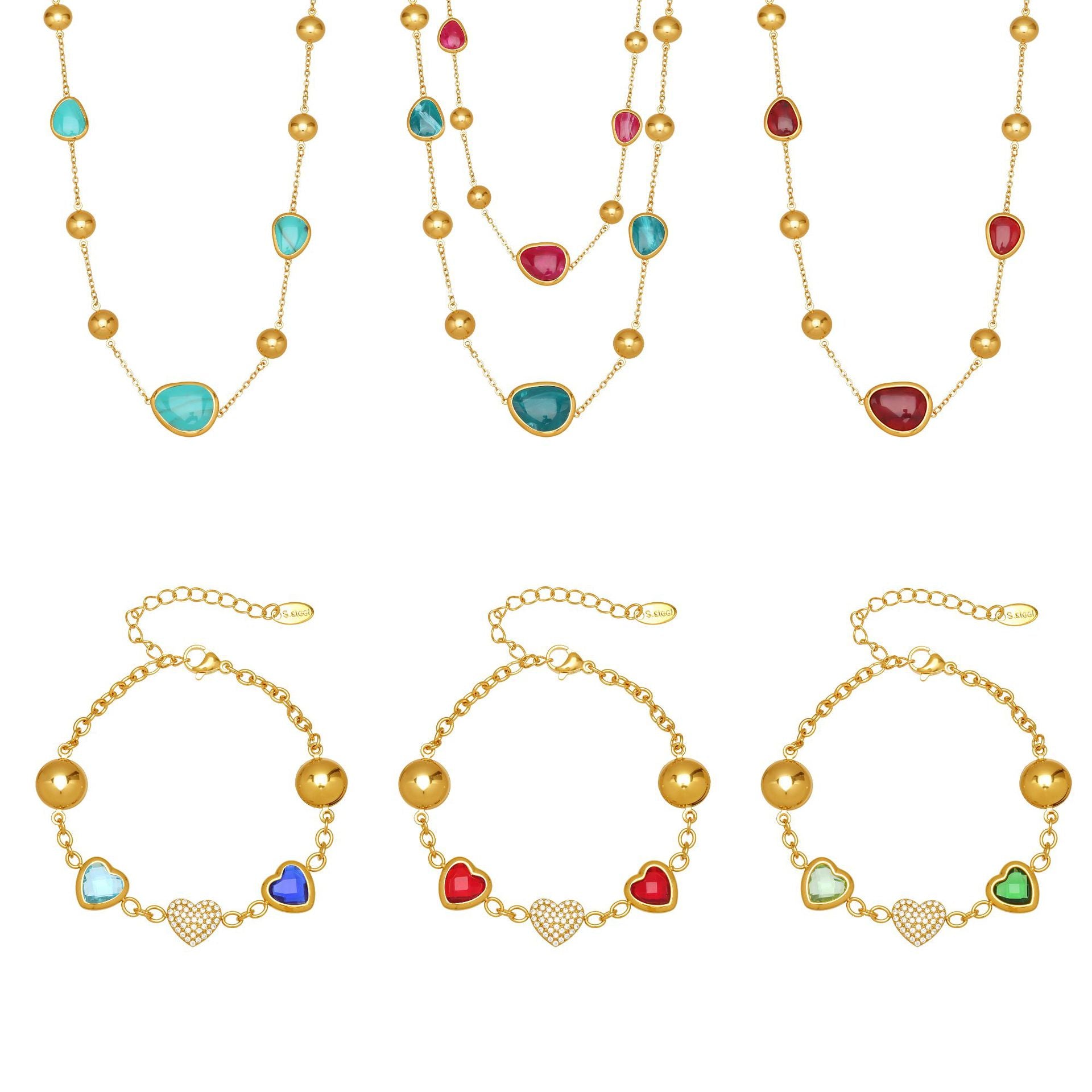 Stainless steel colorful resin-edged necklace, 5A cubic zirconia heart bracelet dopamine jewelry set, 18k gold plated fashion jewelry, waterproof, rustproof, and hypoallergenic.
