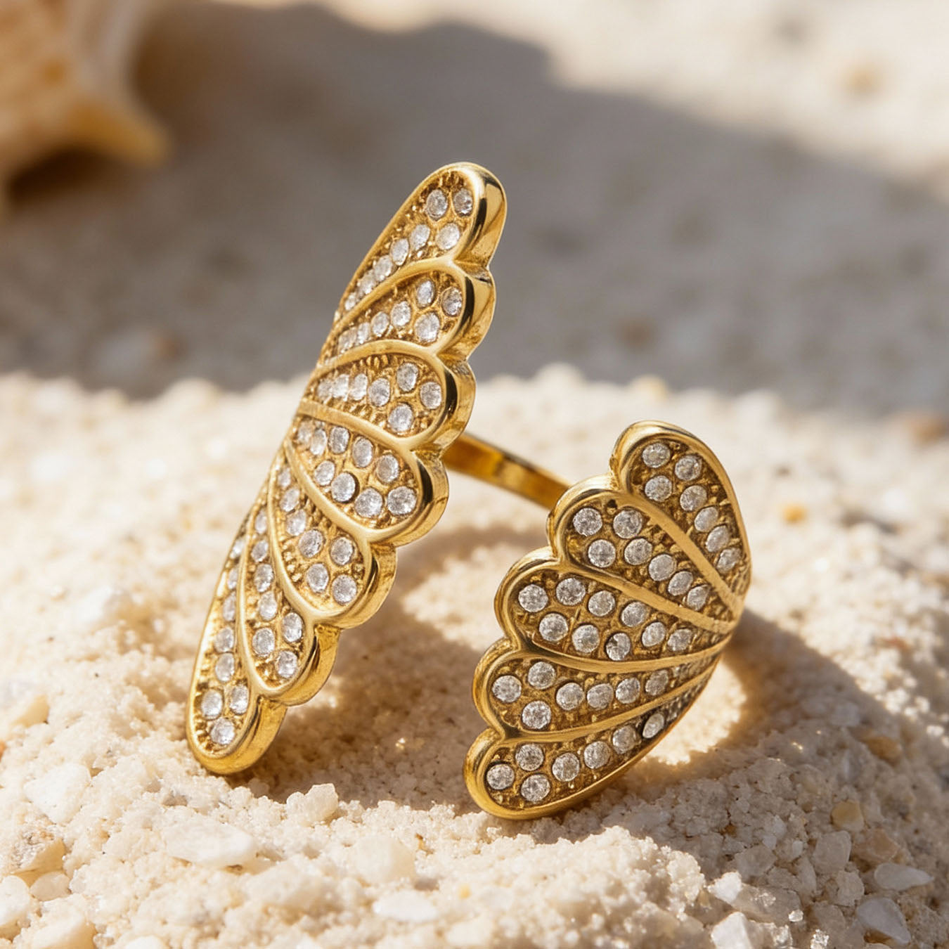 Indulge in coastal elegance with our exquisite Seashell Open Band Ring. This statement piece features a unique asymmetrical shell design, meticulously pavé-set with shimmering crystals that catch the light from every angle. Crafted with a sleek, adjustable open band, it offers a custom fit for any finger, ensuring both comfort and style. Available in radiant gold and classic silver finishes, this ring is the perfect accessory to elevate your summer wardrobe or add a touch of oceanic glamour to your everyday look.