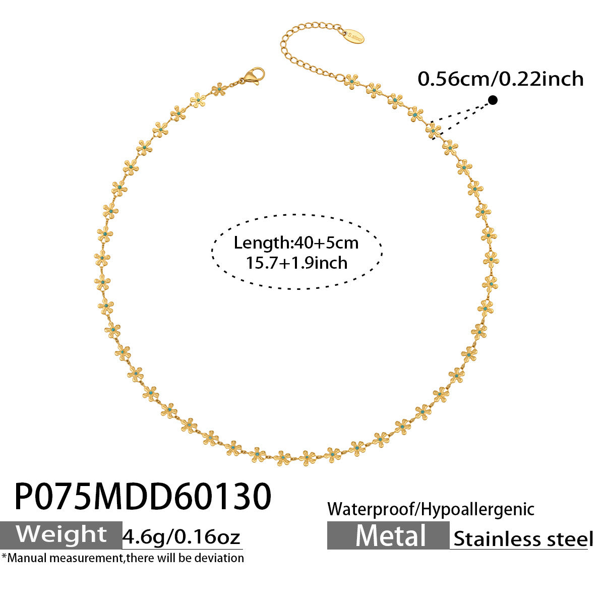 - Water resistant and tarnish free.